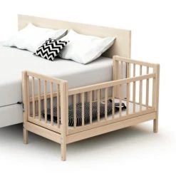 Caractéristiques complémentaires : Équipé d’une barrière haute (berceau) et d’une barrière basse (cododo) interchangeables avec outil fourni.