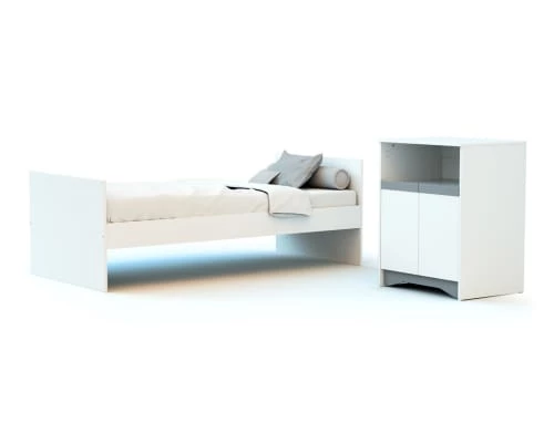 Tous les éléments nécessaires à la transformation du cadre de lit bébé en cadre de lit junior sont fournies. Le sommier 90 x 190 cm n’est pas fourni.