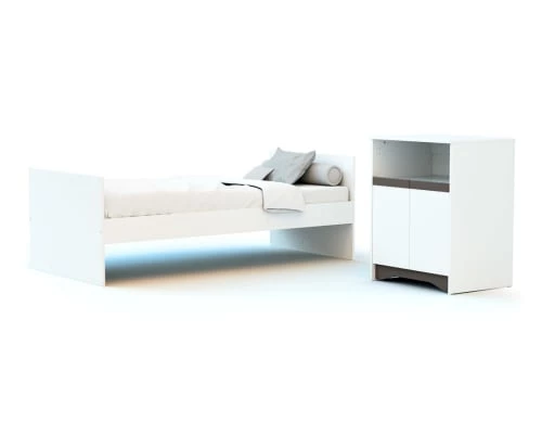 Tous les éléments nécessaires à la transformation du cadre de lit bébé en cadre de lit junior sont fournies. Le sommier 90 x 190 cm n’est pas fourni.