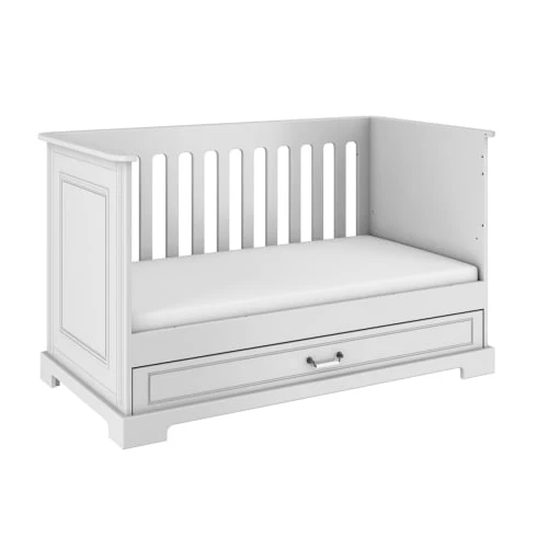 Signé par la marque Bellamy, le lit évolutif 70×140 Ines Blanc, propose une ambiance romantique et chaleureuse à la chambre de votre bébé. Marque : Bellamy – Fabrication européenne – Couleur : Blanc – Matériaux : Panneaux MDF et stratifiés – Poignée en porcelaine faites à la main – Peintures non-allergène, répondant aux normes européennes – Lit évolutif 70×140 : Sommier inclus réglable en 3 hauteurs – Kit de transformation en lit banquette inclus – Tiroir de lit monté sur glissières inclus – Système de fermeture silencieuse – Poids et dimensions : lit évolutif 70×140 : 76 kg – 152 x 83 x 92 cm – Conditionnement : produits livrés, à monter, avec notice incluse. – Produits Bellamy garantis 24 mois – Matelas vendu séparément