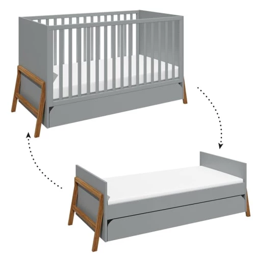 Proposé par la marque Bellamy, le lit évolutif 70×140 Lotta promet une réelle liberté à votre enfant et suivra son évolution grâce son kit de transformation. Marque : Bellamy – Fabrication européenne – Couleur : Gris – Matériaux : Panneaux stratifiés – Pied en bois de chêne – Peintures non-allergène, répondant aux normes européennes – Lit évolutif : Sommier inclus réglable en 3 hauteurs – 2 barreaux amovibles – Kit de transformation inclus – Tiroir de lit monté sur glissières inclus – Couvercle dissimulant le tiroir de lit inclus – Tiroir équipé d’un système de fermeture silencieuse – Poids et dimensions lit évolutif : 48,5 kg – 161 x 75 x 90 cm – Conditionnement : Produits livrés à monter, notice incluse. – Produits Bellamy garantis 24 mois – Matelas vendu séparément