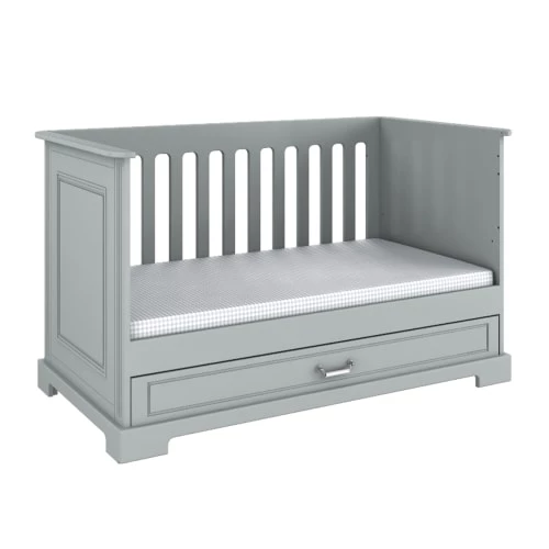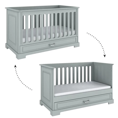 Le joli lit évolutif 70×140 Ines gris, proposé par la marque Bellamy, offrira un couchage confortable pour bébé et suivra son évolution. Marque : Bellamy – Fabrication européenne – Couleur : Gris – Matériaux : Panneaux MDF et stratifiés – Poignée en porcelaine faites à la main – Peintures non-allergène, répondant aux normes européennes – Lit évolutif 70×140 : Sommier inclus réglable en 3 hauteurs – Kit de transformation en lit banquette inclus – Tiroir de lit monté sur glissières inclus – Système de fermeture silencieuse – Poids et dimensions : lit évolutif 70×140 : 76 kg – 152 x 83 x 92 cm – Conditionnement : produits livrés, à monter, avec notice incluse. – Produits Bellamy garantis 24 mois – Matelas vendu séparément