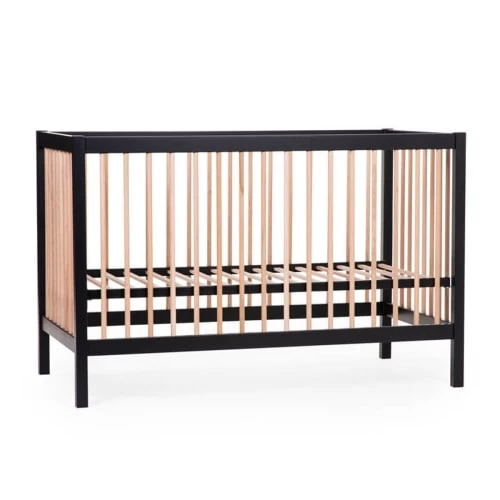 Le lit bébé Noir/Naturel 60 x 120 cm est un produit au design minimaliste et intemporel qui convient aux enfants dès la naissance. Compatible avec un matelas de 60 x 120 cm (vendu séparément), ce lit à barreaux est conçu en bois de hêtre massif et MDF. Caractérisé par des lignes minimalistes et tendance, ce lit à barreaux n’est doté d’aucune vis apparente. Ultra pratique, son sommier à lattes est ajustable sur différentes positions afin de s’adapter au mieux à l’âge de votre bout’chou. Véritable élément de décoration pour la chambre de votre petit trésor, ce lit est également disponible dans le coloris Blanc/Naturel. Quelles sont les caractéristiques du lit bébé Noir/Naturel 60 x 120 cm de Childhome ? Le lit bébé Noir/Naturel convient aux enfants dès la naissance. Il est confectionné en bois de hêtre massif et MDF. Son design minimaliste et intemporel est conçu sans vis apparente. Son sommier à lattes est réglable sur différentes hauteurs. Quelles sont les caractéristiques techniques du lit bébé Noir/Naturel 60 x 120 cm de Childhome ? Âge : dès la naissance Matériaux : hêtre et MDF Dimensions : 120 x 60 cm Poids : 19 kg Conforme aux normes EN716