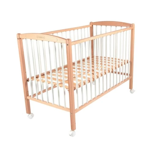 La marque Combelle vous propose ce lit bébé traditionnel à barreaux, de taille 60×120 cm, modèle Arthur en bois massif avec son look bicolore bois naturel et blanc laqué. Il sera parfait pour accueillir bébé dès ses premières nuits et jusqu’à 4 ans. Vous pourrez le déplacer facilement car il est équipé de roulettes, ainsi vous gardez toujours un œil sur bébé. Très pratique, ce lit est évolutif et s’adapte à la croissance de votre bébé en réglant la hauteur de son plancher sur 4 positions différentes. La marque Combelle est gravée dans le bois pour apporter encore plus d’authenticité à ce lit bébé traditionnel et élégant.