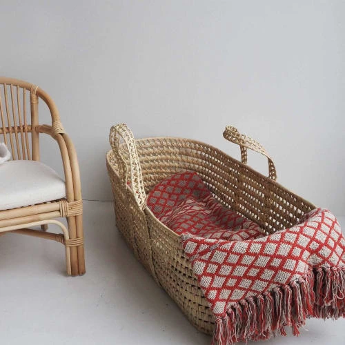 Quand le bambin sera enfant il pourra utiliser ce couffin tressé comme panier de rangement pour ses jouets ou ses livres.