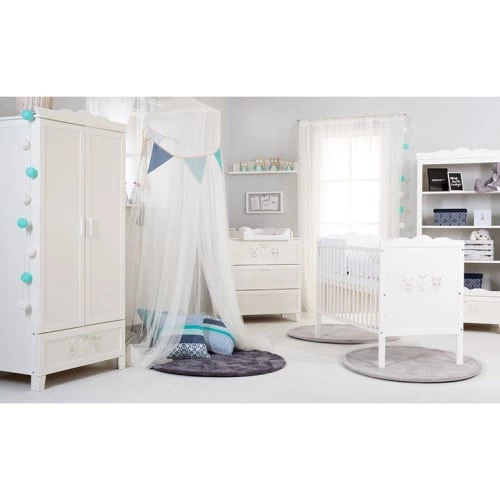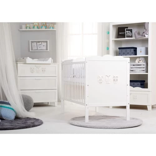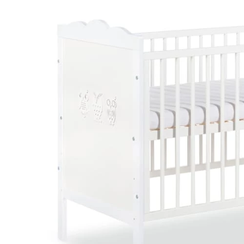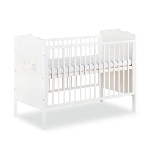 Lit bébé 60×120 Klups, couleur blanche, amènera votre bébé aux pays des rêves, tout en sécurité grâce à sa peinture à base d’eau. Marque : Klups – Collection : Marsell – Fabrication Européenne – Matériaux : Panneaux MDF et agglomérés – Sommier en bois de pin – Peinture à base d’eau – Couleurs : Blanc – Caractéristiques : Lit bébé : Sommier inclus – Réglable en 3 hauteurs (24 – 39 – 54 cm à partir du sol) – 3 barreaux amovibles – Poids et dimensions : Lit bébé : 16 kg – 66 x 94 x 124 cm – Dimensions couchage : 60 x 120 cm – Conditionnement : Meubles livrés, avec sommier et sans matelas, à monter avec notice incluse. – Garantie 24 mois – Matelas vendu séparément