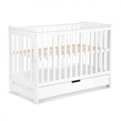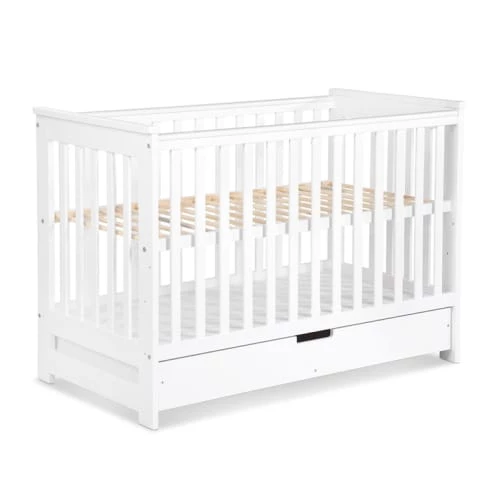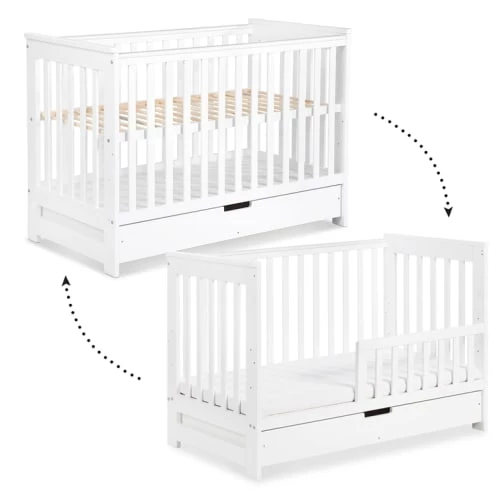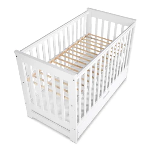 Lit évolutif 60 x 120 tiroir de lit inclus Klups, Iwo allie confort et modernité, en effet ce lit évoluera en même temps que votre enfant en lui apportant autonomie au fil des années. Marque : Klups – Collection : Iwo – Fabrication Européenne – Matériaux : Panneaux MDF et agglomérés – Sommier en bois de pin – Peinture à base d’eau – Couleurs : Blanc – Caractéristiques : Lit évolutif 60×120 : Sommier inclus – Réglable en 3 hauteurs (24 – 39 – 54 cm à partir du sol) – Tiroir de lit inclus – 2 barreaux amovibles – Évolutif en lit banquette – Barrière de sécurité incluse – Dimensions : Lit évolutif : 67 x 127 x 87 cm – Dimensions couchage : 60 x 120 cm – Conditionnement : Meubles livrés, avec sommier et sans matelas, à monter avec notice incluse. – Garantie 24 mois – Matelas vendu séparément