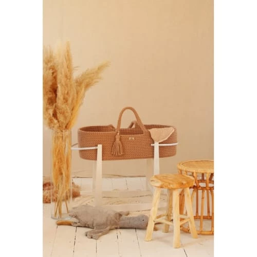 Ce berceau en fibres de coton offrira un doux cocon à bébé dès ses premières nuits. Maniable et léger, le couffin peut se retirer du support en bois, ainsi vous pourrez facilement transporter bébé. Le berceau est fait main par des artisans européens. Le berceau comprend : le couffin, le support à bascule, un matelas en mousse avec housse certifié Oeko-Tex