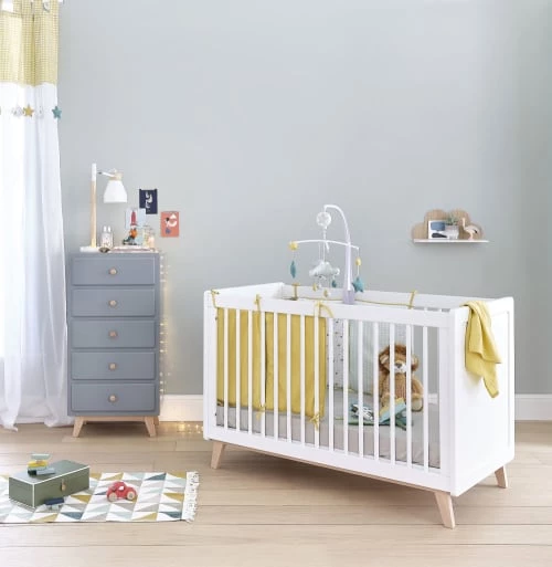 Le lit bébé à barreaux blanc L126 SWEET sera parfait pour accueillir votre petit ange dès ses premières nuits à la maison. Pratique, il possède un sommier réglable en hauteur sur 2 positions et des pieds légèrement obliques, un joli clin d’œil au style vintage. Ce lit bébé crée une ambiance douce et accueillante dans la chambre. On valide, et vous ?
