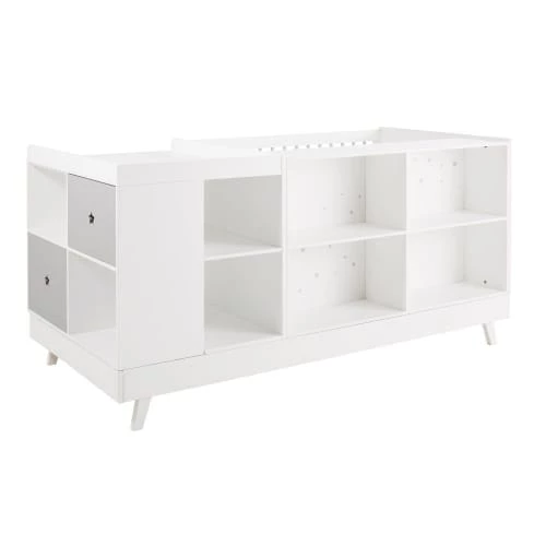 Ensemble lit bébé, meuble à langer et rangements qui se transforme en éléments indépendants : lit junior (couchage 90 x 190 cm), commode et bibliothèque