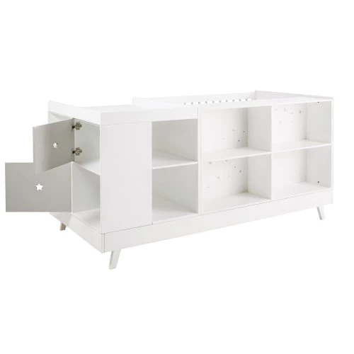 Niches de rangement de chaque côté de la table à langer et au dos du lit bébé (hauteurs utiles 30 cm)