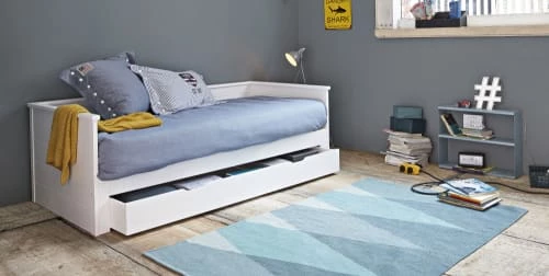Le tiroir de lit extensible blanc HAPPY CAMPER complétera en un tournemain le lit extensible 90×190 blanc HAPPY CAMPER. Son atout phare ? Il accueillera en un tournemain et avec discrétion une couverture, un oreiller et quelques jouets éparpillés au milieu de sa chambre. Le petit plus de ce tiroir de lit ? Ses deux poignées, idéales pour le glisser facilement !