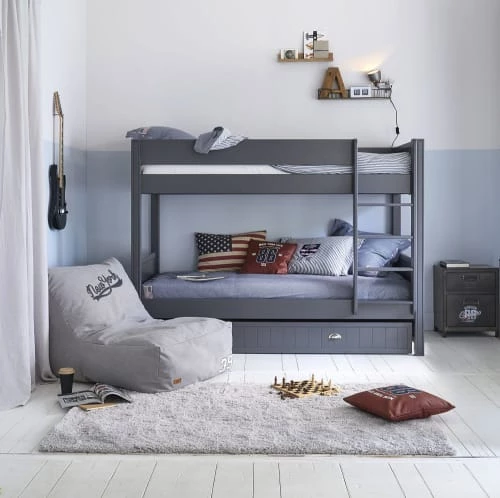 Pratique, ce tiroir derangementse transforme en un lit d’appoint supplémentaire à placer sous le lit superposé gris Newport.