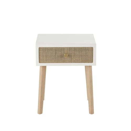 Tiroir : cadre en panneaux de fibres de moyenne densité, façade en rotin tressé, peinture et vernis à l’eau, finition mate