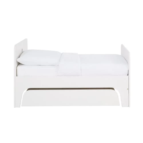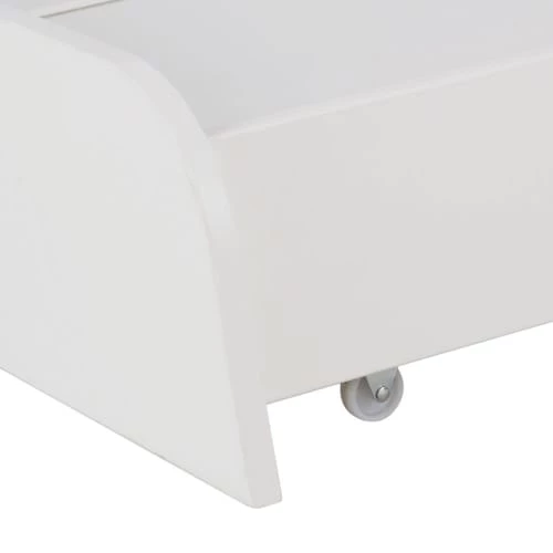 Besoin de rangements astucieux avec des lignes modernes et arrondies dans la chambre de votre enfant ? Le tiroir de lit évolutif blanc 125x95x22 MIKA contentera les exigences déjà bien affirmées de votre enfant chéri. Muni de roulettes, il se glissera très facilement sous le lit. Vous pourrez y ranger les parures de lit ou encore les accessoires de toilette qui seront à portée de main. Grâce à ses dimensions, vous pourrez aussi adapter ce tiroir de lit à un lit évolutif. Votre enfant va adorer !