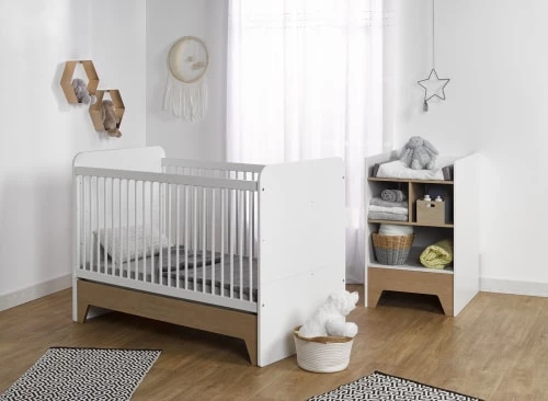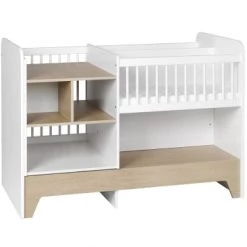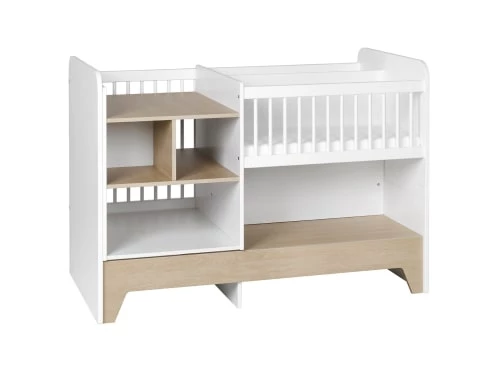 Etape 1 : Le lit bébé evolutif se compose d’un berceau 40×80 et d’un plan à langer. ainsi que de nombreux espaces de rangement qui se révèleront bien pratiques au moment du change ou de la toilette ! (Matelas 40×80 fourni)