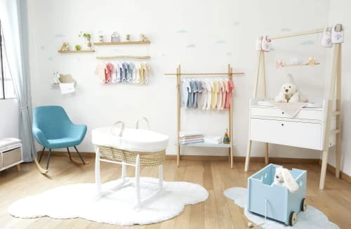 Le support de couffin conçu par Clair de Lune crée un doux mouvement de va-et-vient qui permet d’apaiser bébé et l’aide à s’endormir.