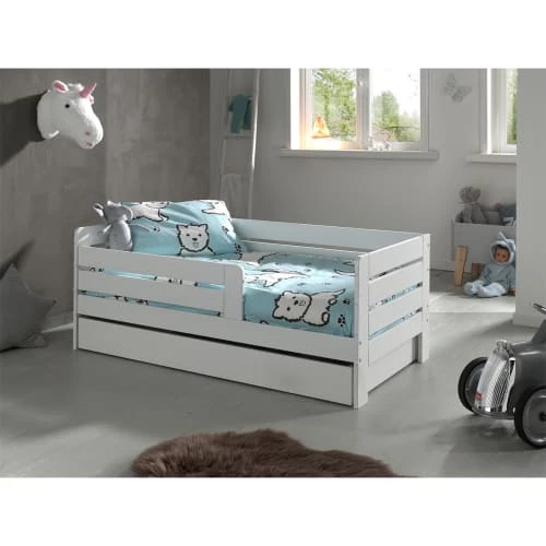 Signé par la marque Vipack, le lit 70×140 Ted, offre un couchage pratique pour votre enfant. Ce lit offre de quoi développer l’autonomie de vote enfant et reste pratique pour ranger ses affaires! Marque : Vipack – Couleur : Blanc – Matériaux : Pin massif – Caractéristiques : Sommier à fagot inclus – Tiroir de lit pour rangement uniquement inclus – Tiroir de lit monté sur 6 roulettes – L’entrée du lit peut être placée à droite ou à gauche – Les barrières latérales peuvent se retirer – Poids et dimensions lit : 24 kg – 148 x 76 x 56 cm – Poids et dimensions tiroir de lit : 12 kg – 138,6 x 73,7 x 14,6 cm – Conditionnement : produits livrés, à monter, avec notice incluse. – Produit Vipack garanti 24 mois – Matelas vendu séparément
