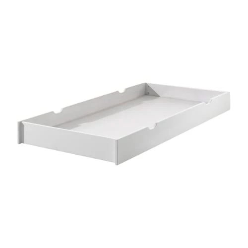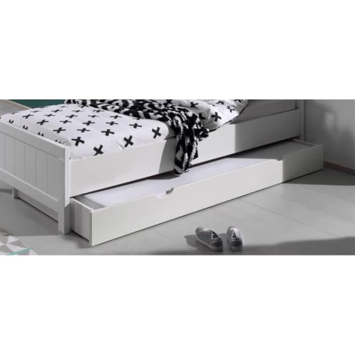 Le tiroir de lit Vipack trouvera facilement sa place sous le lit Erik. Pratique il peut se transformer en lit gigogne en y ajoutant un sommier et un matelas. Marque : Vipack – Gamme : Erik – Matériaux : Panneaux MDF et Pin Massif – Couleur : Blanc – Produit : Tiroir de lit – Compatible avec le lit Erik (vendu séparement) – 10 roulettes – Hauteur maximum du matelas : 10 cm – Poids maximum recommandé : 50 kg – Dimensions: Tiroir de lit : 198.5 x 94 x 19 cm – Poids : 18.5 kg – Garantie : 24 mois