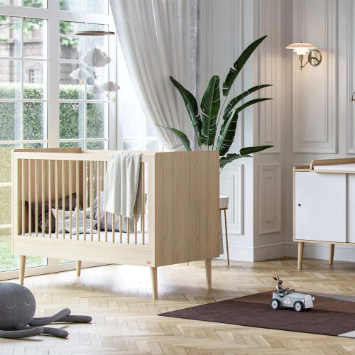 Robuste et conçu pour être utilisé dès que bébé quitte son berceau, le lit bébé 60×120 Retro est signé de la marque Vox. Confortable et sécurisé, il est très esthétique, arborant un design vintage très sympa inspiré des années 70 ! Marque: Vox – Fabrication européenne – Matériaux : Panneaux de particules stratifié, pieds en bois – Meuble de couleur bois – Lit bébé : Réglable en hauteur sur 3 niveaux – Lit bébé: 38 kg – Lit bébé: 124,5 x 65 x 96,5 cm – Meuble Vox livré sans matelas, avec sommier, à monter, avec notice incluse. – Produits Vox garantis 24 Mois. – Matelas vendu séparément