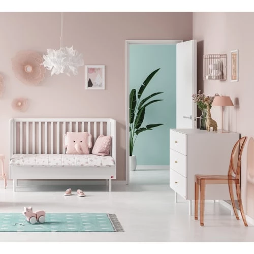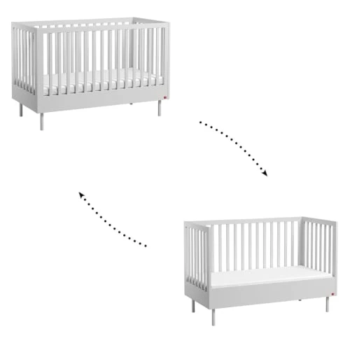 Grâce au lit évolutif 70x140cm, offrez à bébé le confort et la sécurité qu’il mérite. 100% de fabrication Européenne, c’est un meuble de grande qualité aux finitions impeccables qui ira aussi bien dans la chambre d’un garçon que dans celle d’une fille. Marque: Vox – Fabrication européenne – Matériaux : Panneaux d’aggloméré stratifié – Empiètement en métal – Sommier et poignées en bois – Lit évolutif : Hauteur ajustable sur 3 niveaux – Kit de transformation inclus – Sommier inclus – Hauteur du matelas conseillé : 12 cm vendu séparément – Poids et dimensions lit évolutif : 40 kg – 144 x 75 x 98 cm – Conditionnement : produits livrés, à monter, avec notice incluse. – Produits Vox garantis 24 Mois. – Matelas vendu séparément