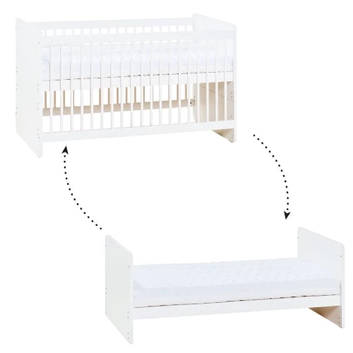Signés par la marque Vox, les meubles qui composent, ici, la chambre complète Maxim sont épurés et modernes. Marque: Vox – Collection : Maxim – Panneaux d’agglomérés – Couleur : blanc – Fabrication européenne – Lit évolutif 70 x 140 – Sommier inclus – Hauteur ajustable sur 3 niveaux – 3 barreaux amovibles – Lit évolutif : 35.5 kg – Lit évolutif: 144.5 x 75 x 86 cm – Produits Vox garantis 24 Mois. – Conditionnement Lit évolutif 70×140 Vox livrés, avec sommier, sans matelas, à monter, avec notice incluse. – Matelas vendu séparément