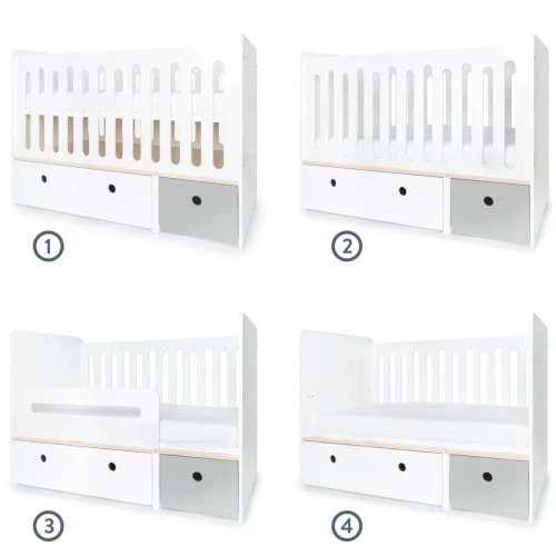Parfait dès la naissance, il peut se transformer progressivement en lit d’enfant.