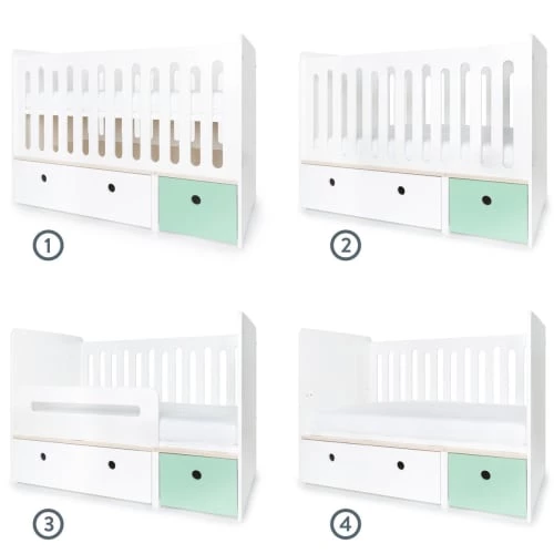 Parfait dès la naissance, il peut se transformer progressivement en lit d’enfant.
