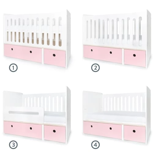 Le lit bébé évolutif COLORFLEX est équipé d’un tiroir avec le système de fermeture “Soft Close” (doux et silencieux) et d”une petite niche de rangement, idéale pour les accessoires de votre bébé.