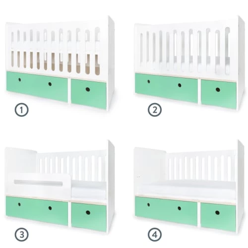 Le lit bébé évolutif COLORFLEX est équipé d’un tiroir avec le système de fermeture “Soft Close” (doux et silencieux) et d”une petite niche de rangement, idéale pour les accessoires de votre bébé.